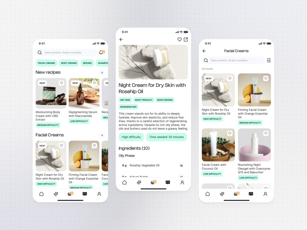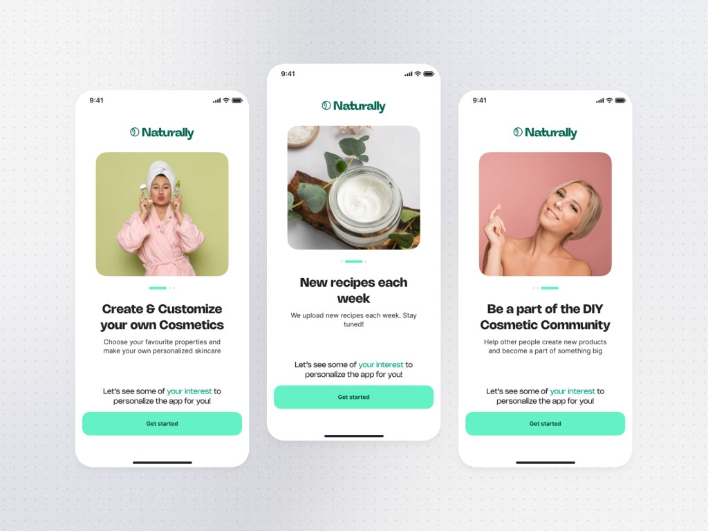 The project is a Natural Cosmetics App with a strong belief in personalization. Not every client has the same skin, hair or body type.