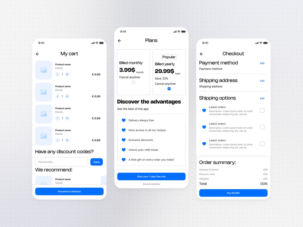 From left to right: Cart – Premium Page – Payment Page